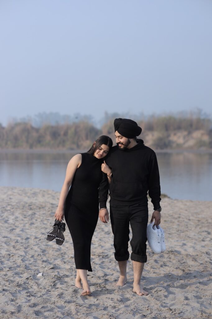 We hadn’t planned any pre-wedding shoot, but when we reached the Gurudwara for Laava Phere, there was already another wedding taking place, so we had to wait outside. During that time, the photographer suggested taking a few candid shots and even recorded some beautiful clips.